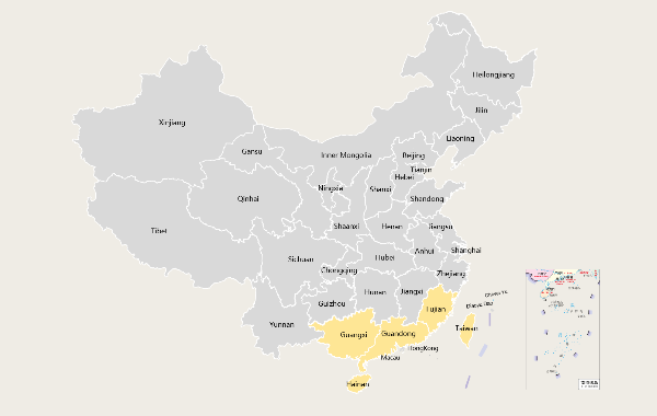 Territory: Guangdong, Guangxi, Fujian, Hainan, Taiwan