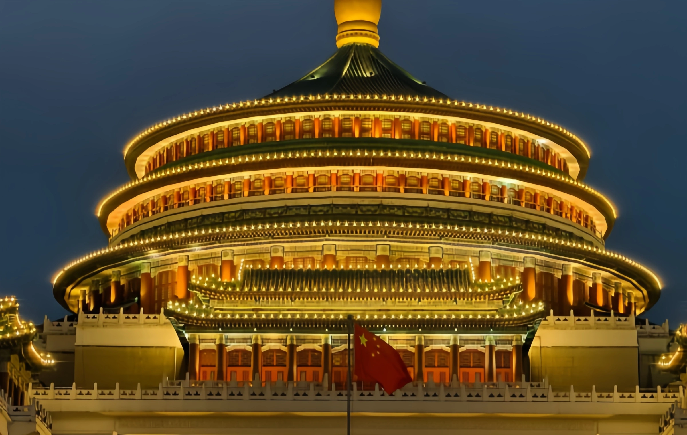 The Chongqing People's Auditorium, a landmark blending traditional Chinese palace architecture with modern Western engineering, stands as a symbol of Chongqing's cultural heritage. Built between 1951 and 1954 under the design of architect Zhang Jiade, it covers 66,000 square meters with a 65-meter-tall main hall and a 46-meter-diameter auditorium. Recognized as one of China's Top 10 Classic Asian Architecture of the 20th Century, it earned the Luban Prize and Zhan Tianyou Civil Engineering Award, and was listed as a National Key Cultural Relic in 2013. Its green-glazed tiles, red columns, and symmetrical layout reflect Confucian principles, while its steel-concrete structure showcases 20th-century engineering innovation. In 1987, it ranked second globally in the UK's Comparative History of Architecture among 42 iconic Chinese buildings.