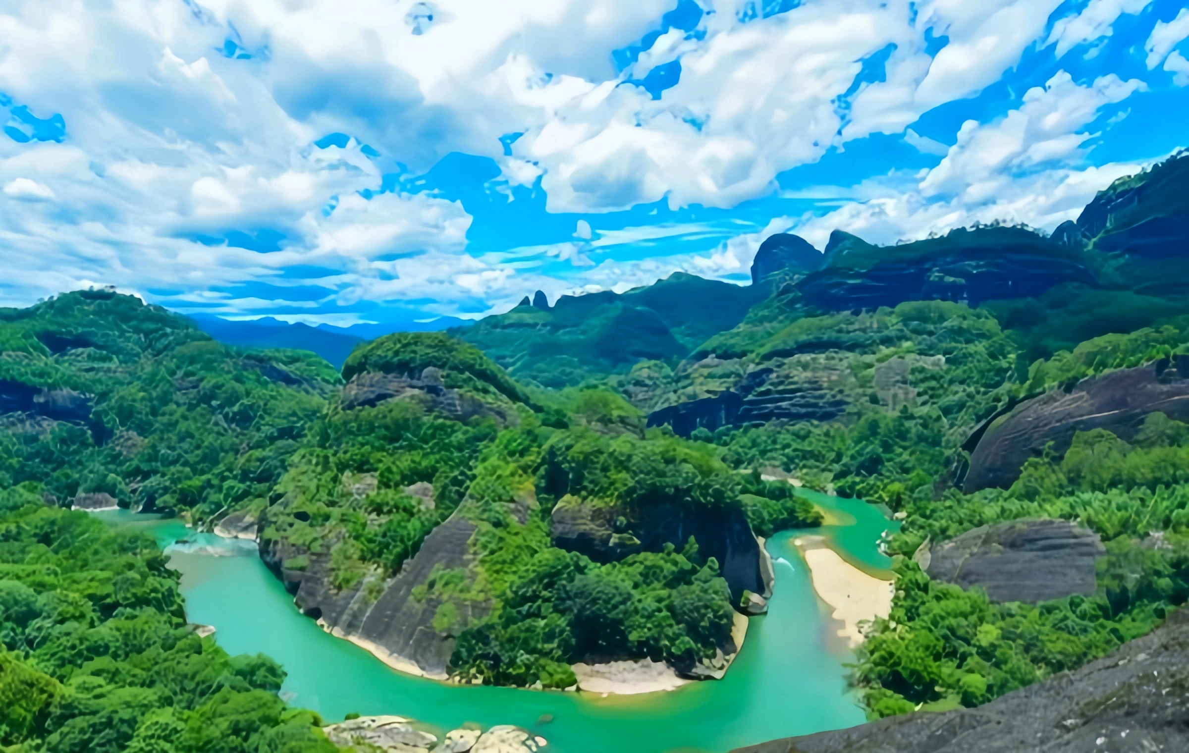 Bamboo Raft Dock → Nine-Bend River → Wuyi Palace → Tea Tasting → Xiamei Village.