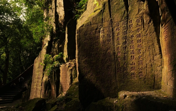 Poetry and Calligraphy: Over 200 stone inscriptions from Tang to Qing dynasties adorn the cliffs, including works by renowned poets like Li Bai and Du Fu.